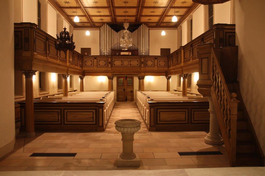 Der Jugendstil-Leuchter auf der Empore wurde um 1900 angeschafft.